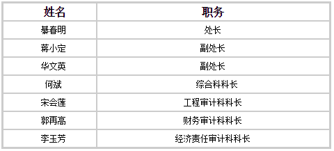 分管:财务审计科、物资设备审计 分管:经济责任审计科
